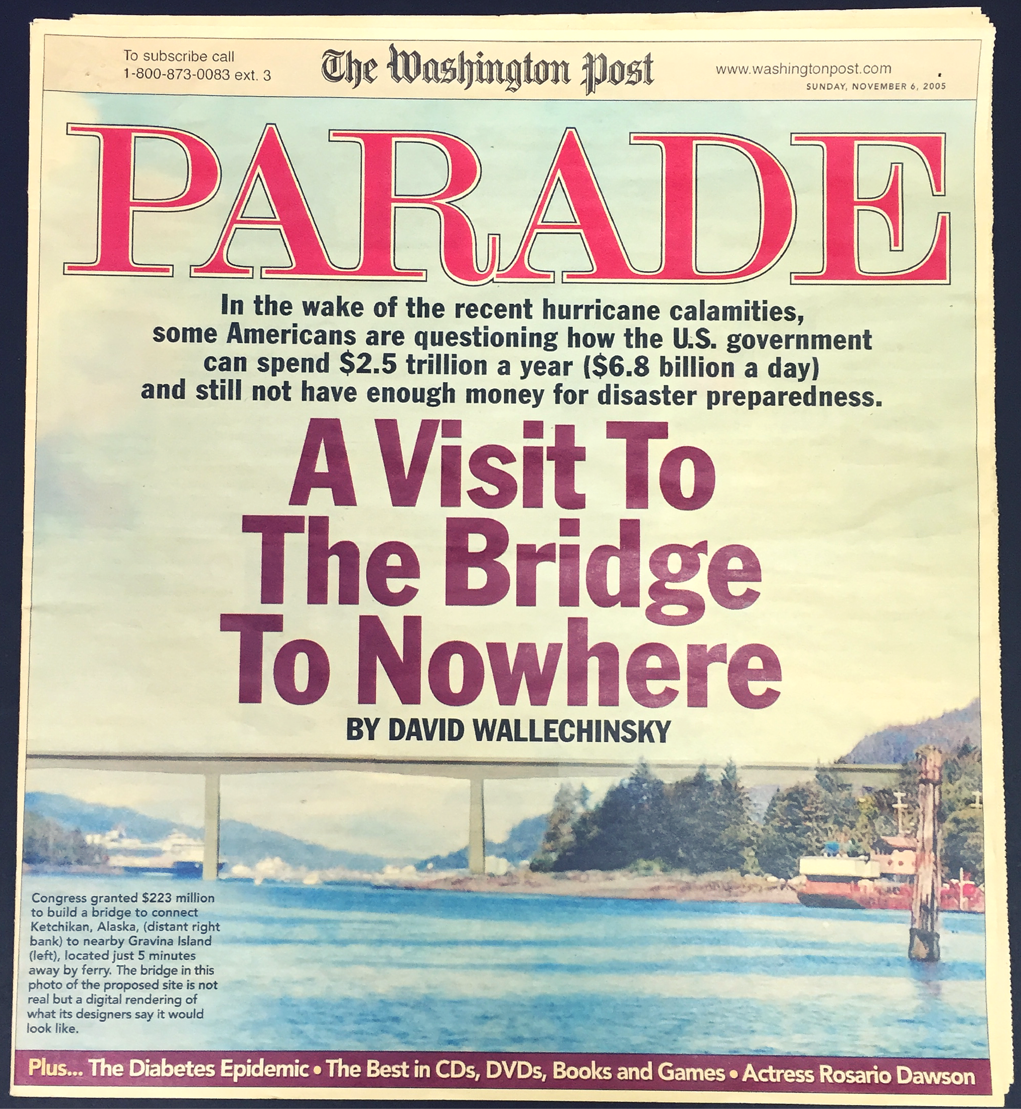 Bridge to Nowhere (2003): It was TCS who dubbed the Gravina Island Bridge in Alaska “The Bridge to Nowhere” and that has now entered into the lexicon as shorthand for wasteful federal spending, especially when it is directed by Congress. That cash was stripped from the bridge project at the end of 2005.