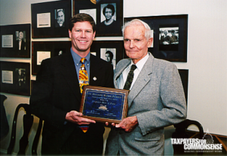 Golden Fleece Award (2000): former Senator William Proxmire (pictured below, at right, with Rep. Ron Kind) asked TCS to revive his “Golden Fleece Award” presented to public officials responsible for wasting public funds. And we did.