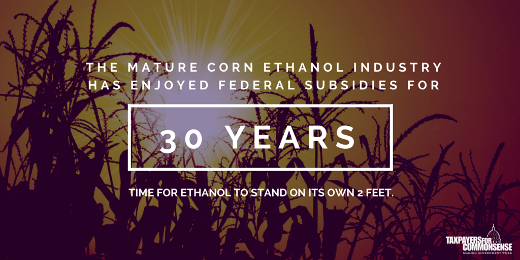 • The federal government has in one form or another provided lucrative subsidies to the corn ethanol industry for more than 30 years, wasting tens of billions of taxpayer dollars in the process.