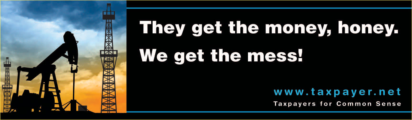 It is too often the case, as this billboard says: that oil and gas companies get the money, honey, and we are left with the mess.